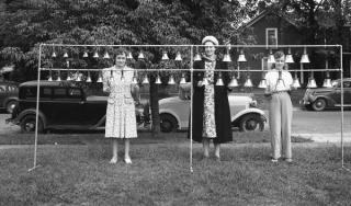 | A great picture of some Wisconsin women playing the Swiss bells. WHI-25191 |