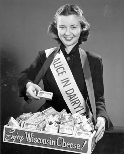 I recently recorded an essay for “Wisconsin Life” about Alice, linking these agricultural queens to fertility goddesses of yore (thankfully, I didn’t actually use the word “yore” in my story). Sure, she began as a kind of beauty queen but the role has evolved into more of a marketing job. You can’t just represent dairy anymore–you actually have to work for it.