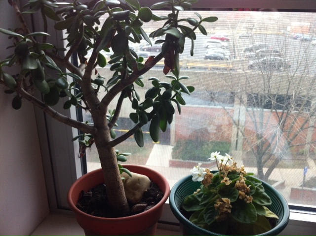 My own plants sit on a windowsill and the floor, enjoying the view, maybe, but missing the camaraderie of the packed greenhouse window.