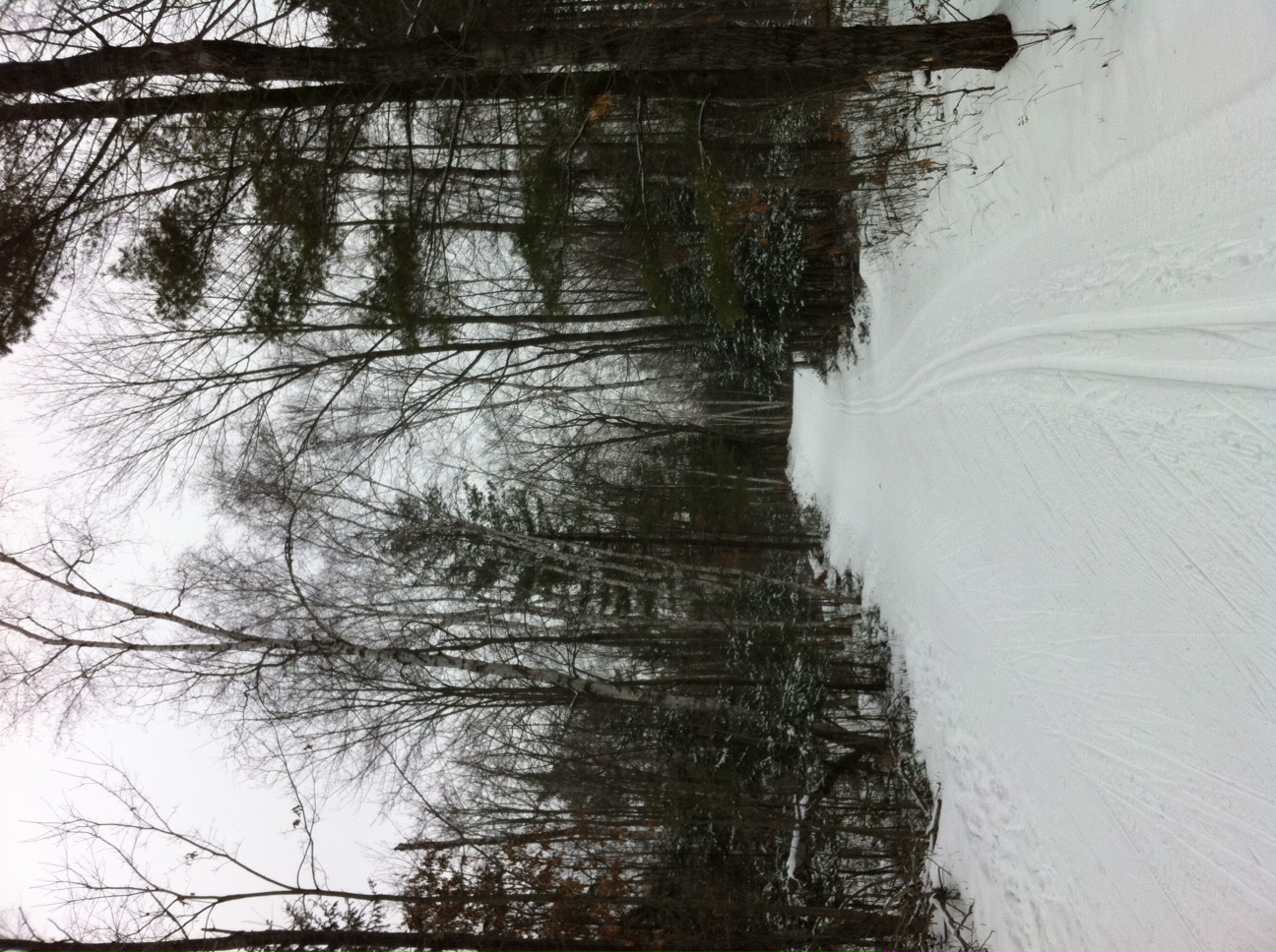 With snow and skis, I can go anywhere, over a frozen pond and through the interior of the woods. In the spring and summer, I’d worry about my path, anxious to find a trail map to keep from getting lost. But in the winter, my ski tracks are reassurance, guiding me back to my start.