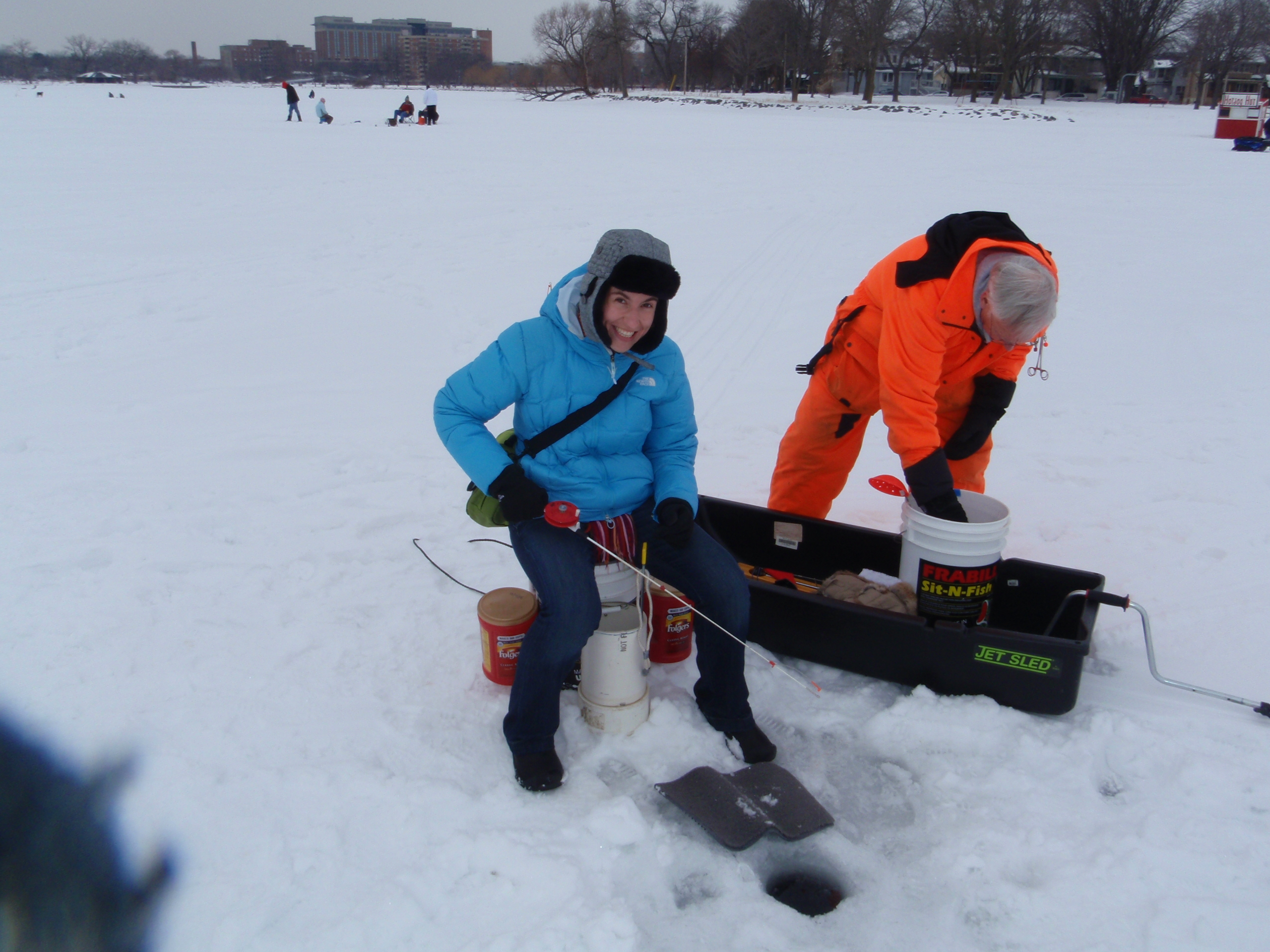 After two hours on the ice, I’m freezing. Walking back toward shore, I smile at the hardier fishermen who got there before me and will leave long after. Nothing about ice fishing seems urban yet here I am, in the middle of Madison clinging to a pole and swinging my bucket.